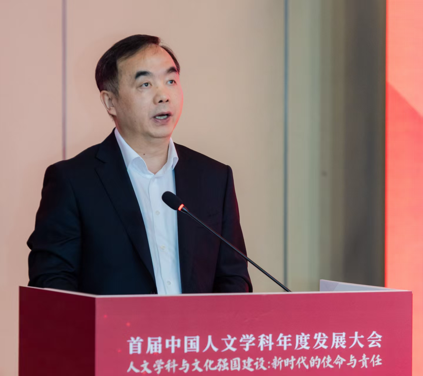 林尚立表示,人文学科担负着道德教化、精神指引、文化继承、文明发展的重要使命。中国人民大学高度重视人文社会科学高等教育教学与研究,着力打造新时代“卓越的人文学科”,以中国精神、中国价值、中国力量推动构建中国特色哲学社会科学。当前,人文学科正面临迫切的内涵建设需求与严峻的转型发展压力。面向新时代新征程,要转变人才培养理念、深耕知识体系建构、深化人文领域交流互鉴、推动科技与人文协同,使人文学科能够承典塑新、薪火相传、力行致远。中国人民大学愿与各位共同写好人文学科建设这篇“大文章”,让人文之光照亮复兴征程、照亮民族未来。