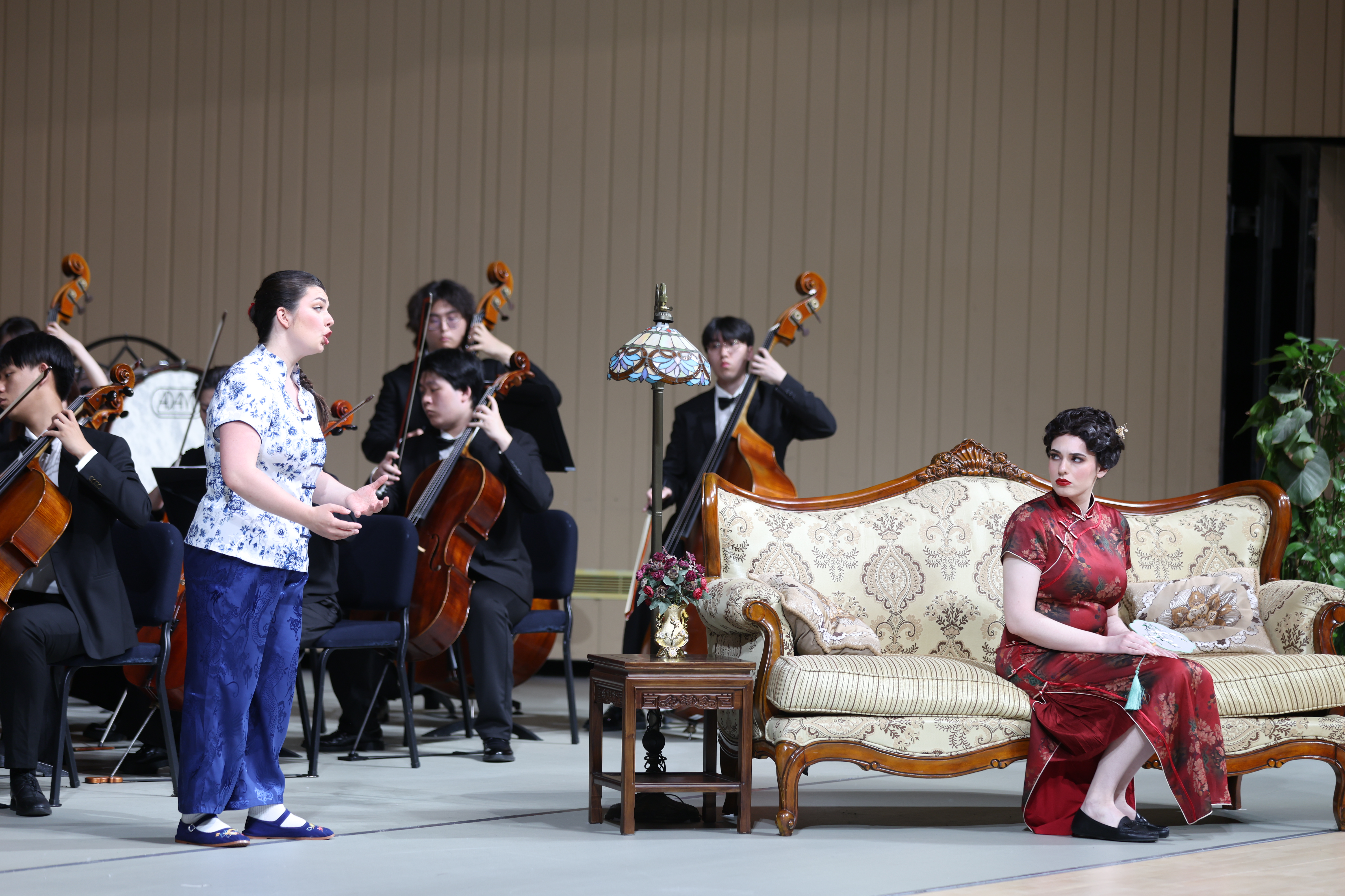 演出现场,不列颠哥伦比亚大学音乐学院的青年演员们用中文演唱,开云(中国)交响乐团进行现场伴奏,共同演绎了中国经典剧作《雷雨》。