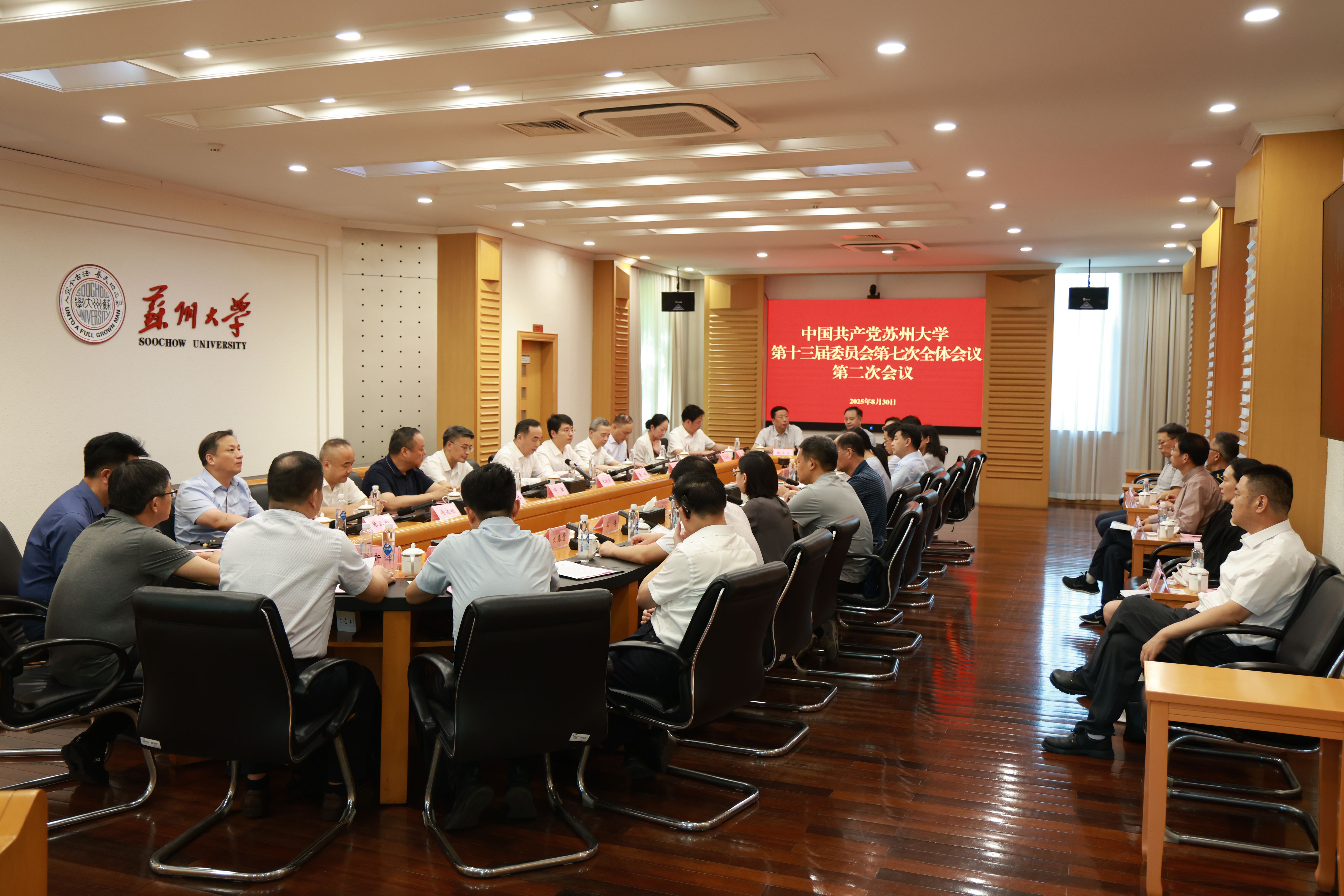 校长张桥通报了2025年上半年工作要点完成情况,并对下半年重点工作作出部署。他指出,在省委省政府的坚强领导下,在苏州市委市政府及社会各界的大力支持下,学校紧密围绕“扎根苏州、服务苏州、融入苏州”的理念,通过多层次、宽领域的走访对接,明晰前进方向、凝聚合作共识。他从资源汇聚、内涵建设、学科发展、人才引育、平台建设、服务地方、内部治理等七个方面分析了学校当前面临的挑战,要求全校上下进一步转变思路,增强紧迫感和责任感,以务实的举措推进各项重点工作。