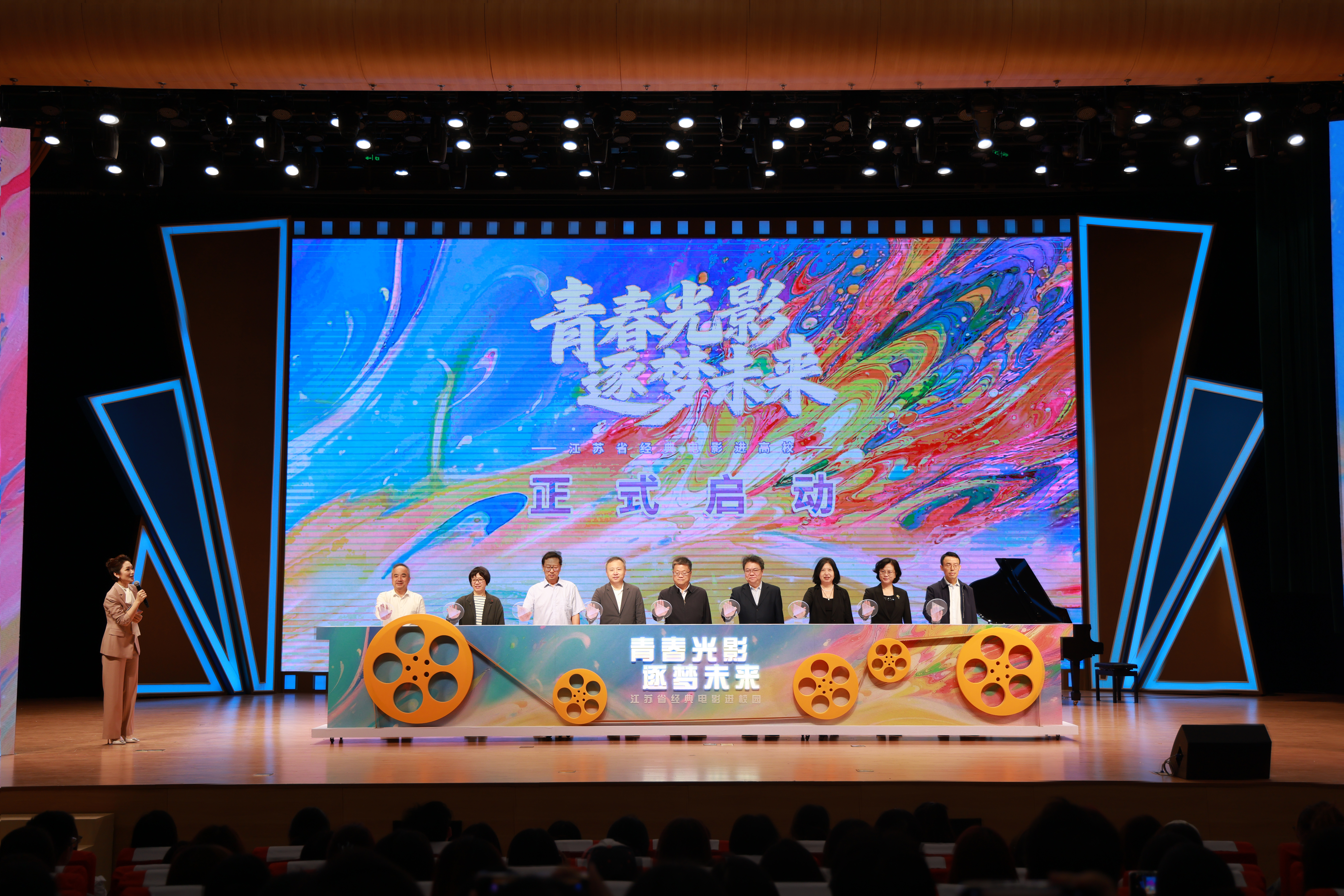 王明珠、陆亮、黄治、金洁、付雪松、刘春、孙向辉、邵正刚、查佐明共同启动“青春光影·逐梦未来”江苏省经典电影进高校活动。