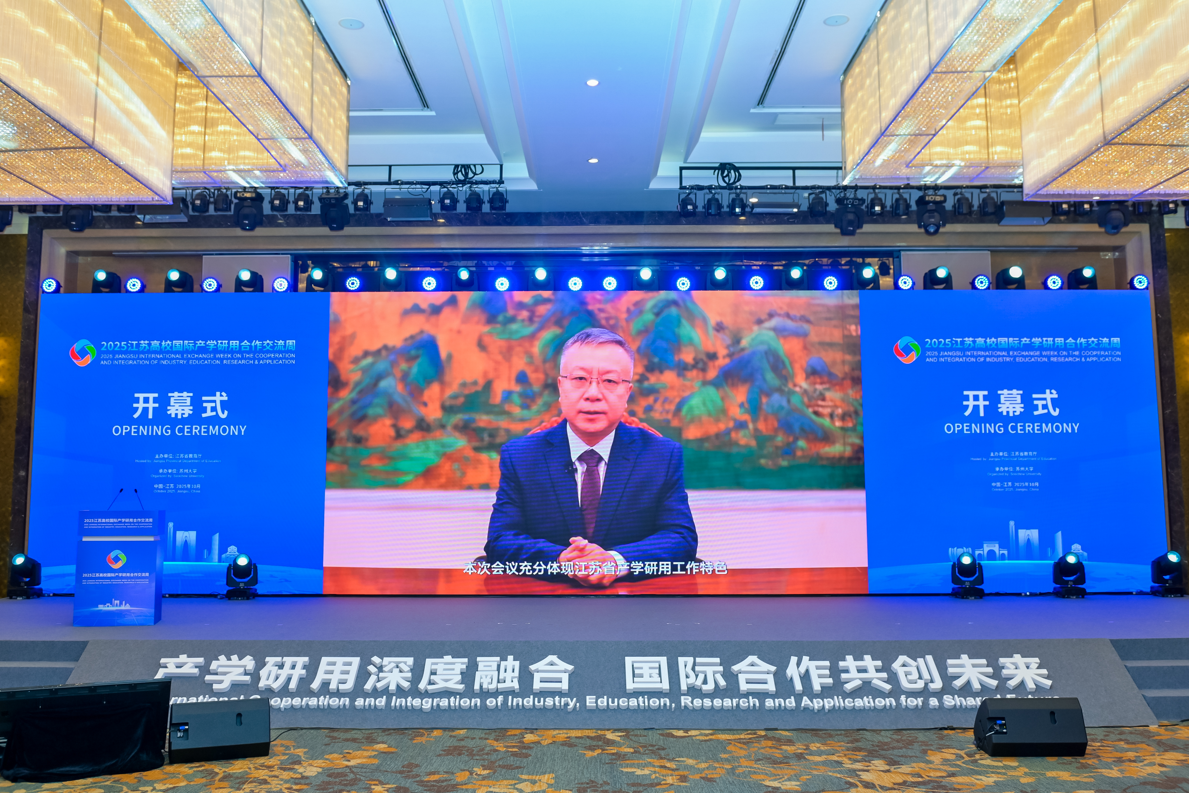 任友群在视频致辞中指出,党的二十届四中全会提出“要加强原始创新和关键核心技术攻关,推动科技创新和产业创新深度融合,一体推进教育科技人才发展,深入推进数字中国建设”,为推动产学研用深度融合、以高水平创新促进高质量发展指明了方向。本届国际产学研用合作交流周充分体现江苏产学研用工作特色,希望与会各方能够达成广泛的合作共识,携手共进、协同创新,大力促进各类科技成果落地转化,为区域发展注入强劲动力。他提出四点倡议:一是加强平台建设,深化合作伙伴关系;二是聚焦产业需求,加快发展范式转型;三是促进成果转化,释放合作互促红利;四是强化国际合作,推动全球创新发展。
